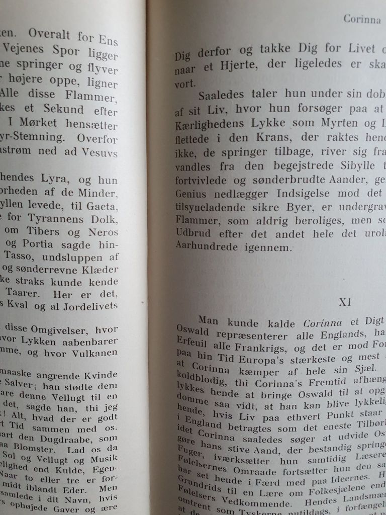 Ved mig står eller vakler eksistensen, siger kærligheden, står og fæstnes uløseligt til livets streng, når mennesker søger mig i dem selv, trues og vakler, når de søger mig først i andre. Da finder de kun mit dobbelte vrængbillede i mørket: Når mennesker med eksistensen som indsats søger deres eksistens, hvor den ikke er, i en anden, som havde de den ikke, eller som havde de mistet det, de ikke kan miste. Jeg, kærligheden, begynder og ender i hver enkelt selv, jeg er din eksistens, jeg er eksistensen.