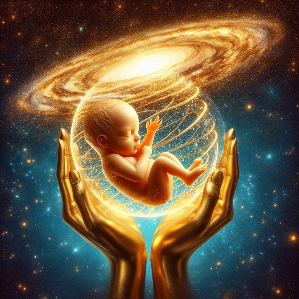 Fra evighed og før tiden begyndte dvæled´ verdensæggets gyldne kugle i Nyx´, nattens skød. En vibration dirrer gennem uendeligheden, en stråle af lys gennemtrænger mørket, der ånder over livets slumrende vande, det rammer ægget, kimen, og danner mælkehvide masser i moderens dybder. Fader-Moder spinder et væv, hvis øverste ende er fæstet til ånden – det lys, der udgik fra det store mørke – og hvis nederste er fæstet til stoffet. Dette væv og ranke sammenbinder og bærer ved kærlighed og Guds Tanke og Vilje universet. (Sammenstillet af elementer fra Dzyâns bog, Stanze 3, Den hemmelige lære, elementer fra græsk og orfisk mytologi, samt fra Vandrer mod Lyset).